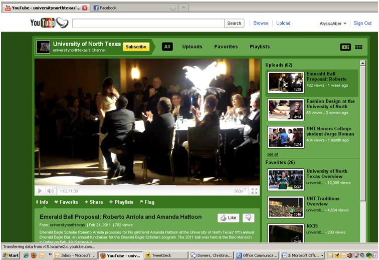 I also have been active on UNT social media team. I regularly create content for the university’s new media outlets including YouTube and Facebook. The below video is one that I shot in February 2011 that has received more than 1,000 views.